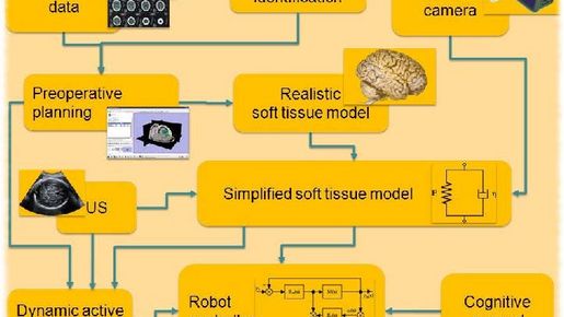 Im Projekt ACTIVE wird eine integrierte Multi-Roboterplattform für die Anwendung in der Neurochirurgie konzipiert und entwickelt. Im Zentrum steht dabei eine leichte und bewegliche Roboterzelle mit 20 Freiheitsgraden (DoFs), die mit Hilfe einer intelligenten Steuerung autonom und/oder in Kooperation mit dem OP-Personal in einer unstrukturierten Umgebung (Operationssaal) komplexe Prozesse (Operationen am offenen Gehirn) durchführen können soll.