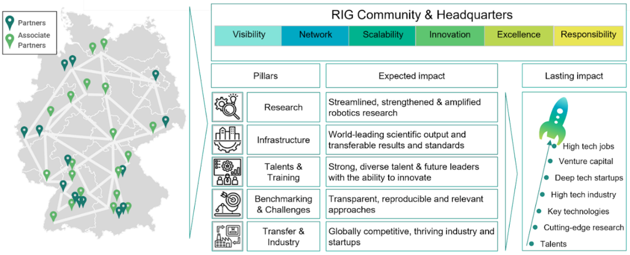 Das Robotics Institute Germany ist eine Initiative des Bundesministeriums für Bildung und Forschung (BMBF), die darauf abzielt, führende Robotiklabore in ganz Deutschland zu vernetzen, um ihre internationale Sichtbarkeit zu erhöhen, Talente anzuziehen und den Fortschritt in der KI-gestuetzen Robotik zu beschleunigen.