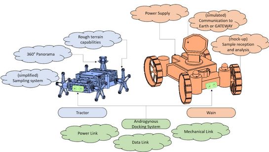 Ziel des Projektes ist es, eine neue Roverarchitektur zu entwickeln, die darauf basiert, die Vorteile heterogener Systeme zu kombinieren um die jeweiligen Systemvorteile in kommenden lunaren Explorationsmissionen ausnutzen zu können. Die Subsysteme können elektromechanisch verbunden und wieder aufgetrennt werden. So sollen größere Strecken im Verbund bewältigt werden, während die Erkundung wissenschafltich interessanter Orte - diese sind typischerweise in schwer zugänglichem Gelände zu finden - von dem abgetrennten TRACTOR Subsystem vorgenommen wird.